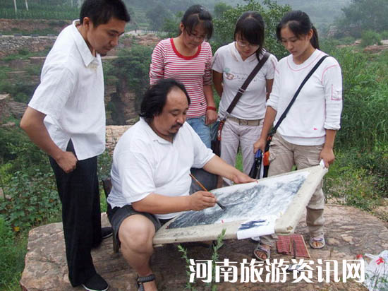 南太行萬仙山景區(qū)的郭亮村,因原中央美術(shù)學院院長張仃的一幅太行山水墨畫引起轟動,從而吸引來了眾多的藝術(shù)家前來寫生,通過藝術(shù)家們又帶來了大批的學生前來,使郭亮村成了我省乃至全國著名的寫生基地,著名的畫家杜月濤博士就是其中之一。 杜月濤自1995 年開始,杜月濤先生十上太行山的郭亮村現(xiàn)場寫生習作。不論春夏秋冬從未停筆。他每一次來到太行山都有不同的感受,這里的山山水水都深刻留在杜先生的腦海中,太行山的山水也在他的畫中表現(xiàn)的淋漓盡致。他還專一寫了“ 太行山寫生記”:甲申之歲,暮秋重九,攜友人三五,赴太行登高?慈f山紅遍,層林盡染,有四方學子數(shù)千人,云集 萬仙山 寫生。是日也,云消日出,登高自卑,看山,以國畫寫生,直抒胸臆,與造物者游。明董玄宰曰: “以境之奇怪論,則畫不如山水;以筆墨精妙論,則山水絕不如畫 ”。筆走丹青,風吹紙碎,啃冷饃,飲涼水,無中生有,得意忘形,對景一日,繪就長卷百尺,苦中作樂,喜甚喜甚。