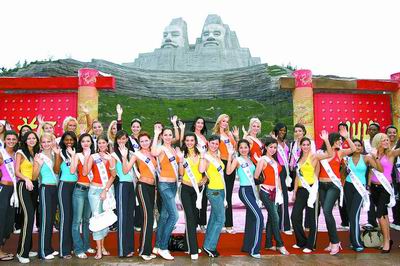 今日上午,108名各國美女將著靚裝進(jìn)入鄭州市區(qū)。 昨日16時20分,鄭州新鄭機(jī)場迎來了參加2007國際旅游小姐冠軍總決賽的首批50名佳麗。簡短的接機(jī)儀式后,各國佳麗乘坐大巴來到鄭州黃河風(fēng)景名勝區(qū),參加第二天入城儀式的彩排。 當(dāng)美女們看到炎黃二帝雕像時,覺得他們很“MEN”,很有男子氣概。她們非常認(rèn)真地聽工作人員介紹雕像的意義,表示要把炎黃二帝介紹給自己國家的人民。 彩排間隙,當(dāng)記者問道她們保持身材的秘訣時,新加坡小姐不斷強(qiáng)調(diào)吃東西要“alit-tle”,少喝酒。 今日10時整,2007國際旅游小姐冠軍總決賽選手在黃河風(fēng)景名勝區(qū)炎黃廣場上舉行鄭州入城儀式,觀眾將可以目睹108名各國佳麗的風(fēng)采。 據(jù)悉,這百名佳麗將被授予“黃河使者”稱號,并將交接“黃河使者”承諾書。她們將以“黃河使者”的身份向自己所在的國家與地區(qū)宣傳并推廣鄭州。