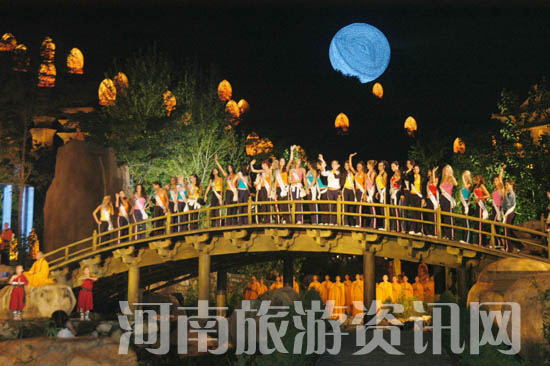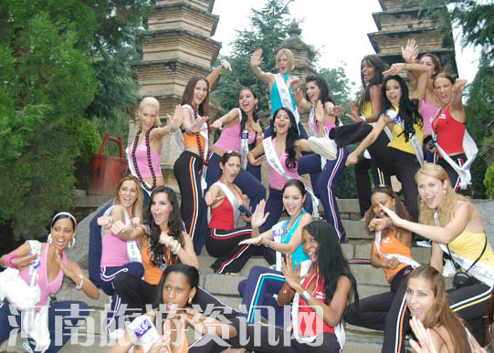 而在開封龍亭,姑娘們更是冒雨“走秀”,為七朝古都平添了時尚的神韻。 7月21日,108名參加2007國際旅游小姐冠軍總決賽的世界各國佳麗,在少林寺,留下了一個個靚麗的身影。 |
