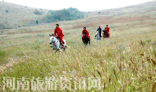 在云夢山主峰頂部,還有一片廣袤的平地,長滿青草,被稱作“云夢草原”,旅游區(qū)提供帳篷和馬匹。在山頂上騮馬,別有一番情趣。