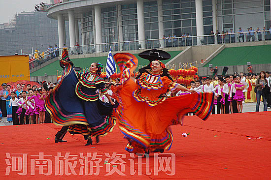 上午9時(shí)30分,當(dāng)副省長(zhǎng)張大衛(wèi)宣布河洛文化旅游節(jié)活動(dòng)開幕的一剎那,多彩的焰火騰空而起,全場(chǎng)一片花團(tuán)錦繡。絢麗多彩的非洲服飾、激情四射的巴西桑巴、悠揚(yáng)動(dòng)聽的蘇格蘭風(fēng)笛……來自瑞士民間精粹表演團(tuán)、美國新世界大門舞蹈團(tuán)、希臘吉米舞蹈表演團(tuán)、德國藝術(shù)自行車團(tuán)、比利時(shí)民俗軍隊(duì)巡演隊(duì)、墨西哥音樂舞蹈團(tuán)、塞內(nèi)加爾非洲女皇表演團(tuán)、巴西桑巴歌舞團(tuán)、玻利維亞格拉松表演團(tuán)等12個(gè)國家的藝術(shù)家的盛裝世界風(fēng)情表演和來自省內(nèi)外20多個(gè)表演團(tuán)體的2000多名演員的精彩表演將開幕式推向高潮。這一活動(dòng)標(biāo)志著河洛文化旅游節(jié)向國際性節(jié)會(huì)邁進(jìn)。 本屆河洛文化旅游節(jié)主題是牽手五洲、歡聚中原,由河南省旅游局、北京市旅游局、洛陽市政府等單位聯(lián)合主辦,共安排22項(xiàng)活動(dòng),其中大型活動(dòng)有世界風(fēng)情巡游活動(dòng)、世界風(fēng)情廣場(chǎng)表演活動(dòng)、2007中國洛陽關(guān)林國際朝圣大典、2007中國洛陽旅行商采購大會(huì)、根在河洛等;洛陽市各縣(市、區(qū))及社會(huì)各界還將舉辦一系列活動(dòng),其中主要包括嵩縣第四屆金秋旅游節(jié)、伏牛山紅葉節(jié)及伏牛山登山大賽、河洛金秋上戈蘋果節(jié)、伏羲文化節(jié)、中國洛陽佛教祖庭白馬寺祈福大法會(huì)、2007“老子與洛陽”國際學(xué)術(shù)研討會(huì)、2007中國洛陽河洛文化研討會(huì)、河洛金秋牡丹展等。開幕式后,來自世界12個(gè)國家的550名民間藝術(shù)家,與省內(nèi)外20多個(gè)表演團(tuán)體的2000多名演員組成的表演方陣,在洛陽開元大道上進(jìn)行了盛裝巡游表演。