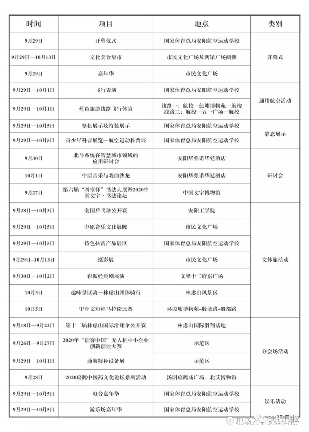 附:第十二屆安陽航空運動文化旅游節(jié)活動安排表