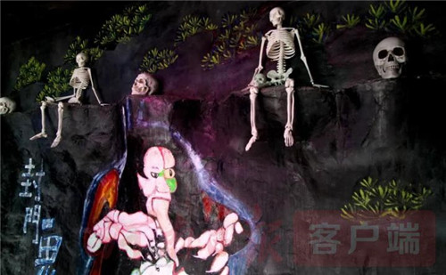 古鎮(zhèn)玄境廣場有家店鋪,一進(jìn)店門陰森寒冷之意便撲面而來。骷髏高坐獰笑,孟婆熬湯低語,看的人汗毛直立變體冰涼,再往里去還有種種離奇詭異等著人們,你敢不敢去?