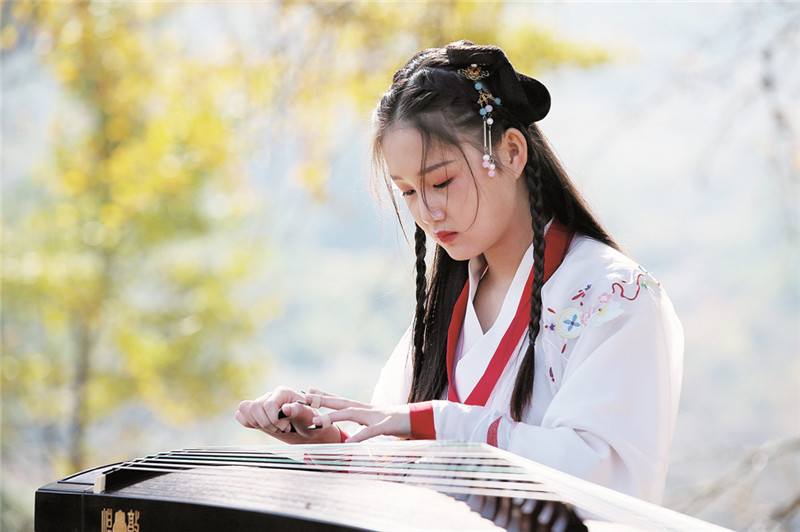 銀杏樹下彈奏古箏 周濤 攝