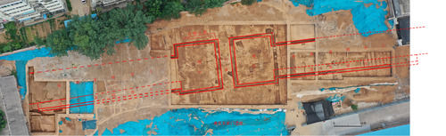 這是隋唐洛陽(yáng)宮城玄武門(mén)遺址分布位置圖(無(wú)人機(jī)照片)。新華社發(fā)(中國(guó)社會(huì)科學(xué)院考古研究所洛陽(yáng)唐城工作隊(duì)供圖)