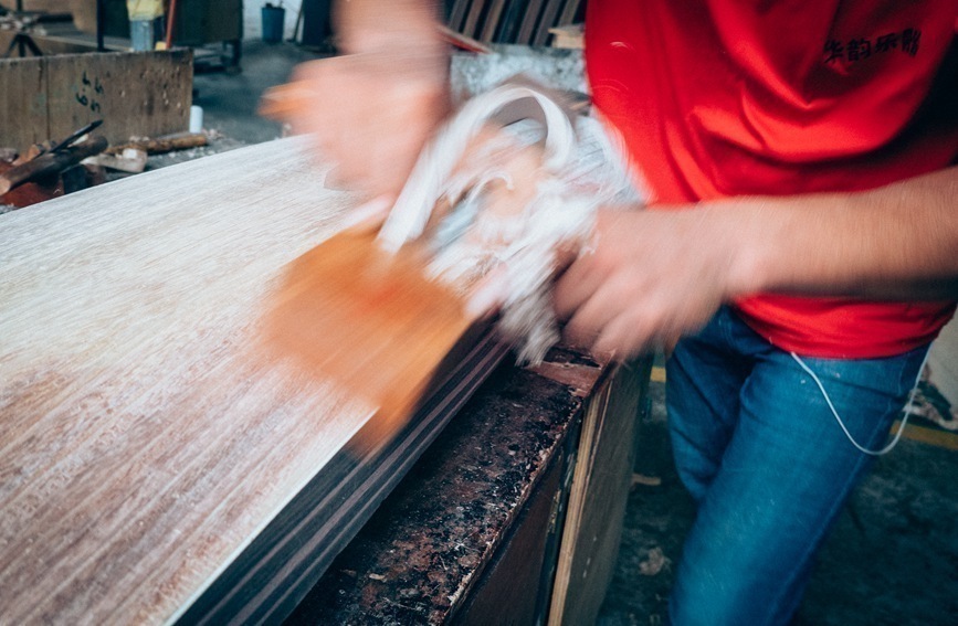 村民在制作古琴
