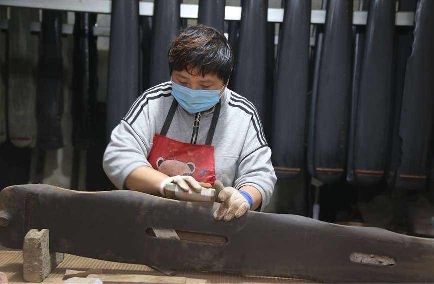徐場村村民在制作古琴