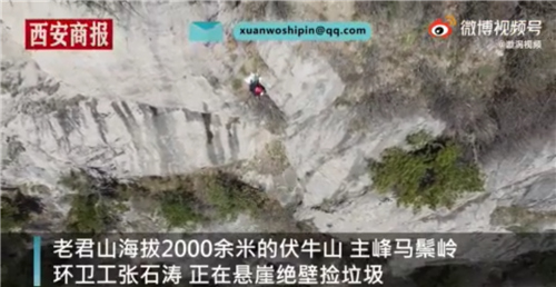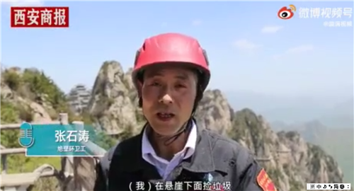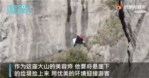 老君山環(huán)衛(wèi)工懸崖?lián)炖弘S手丟的垃圾 將用生命撿起