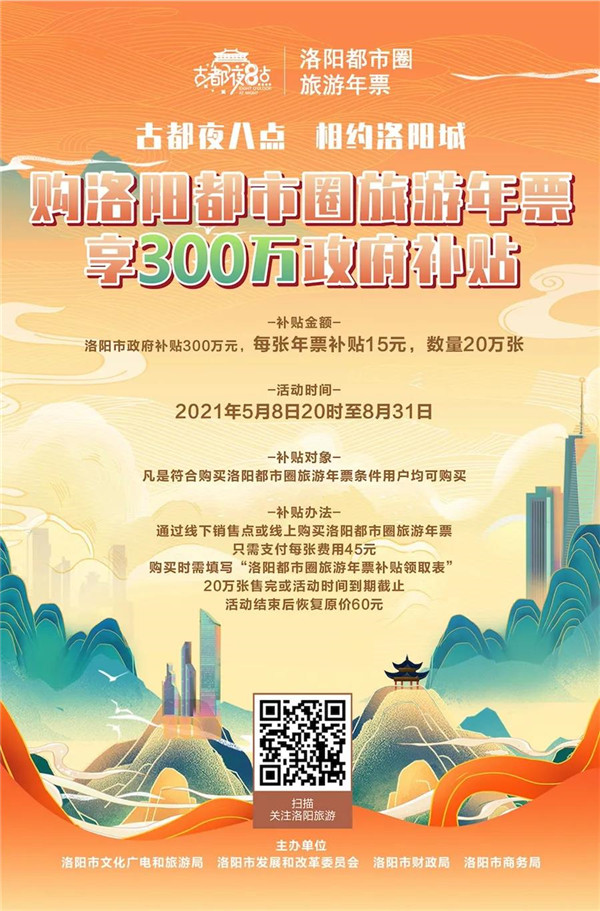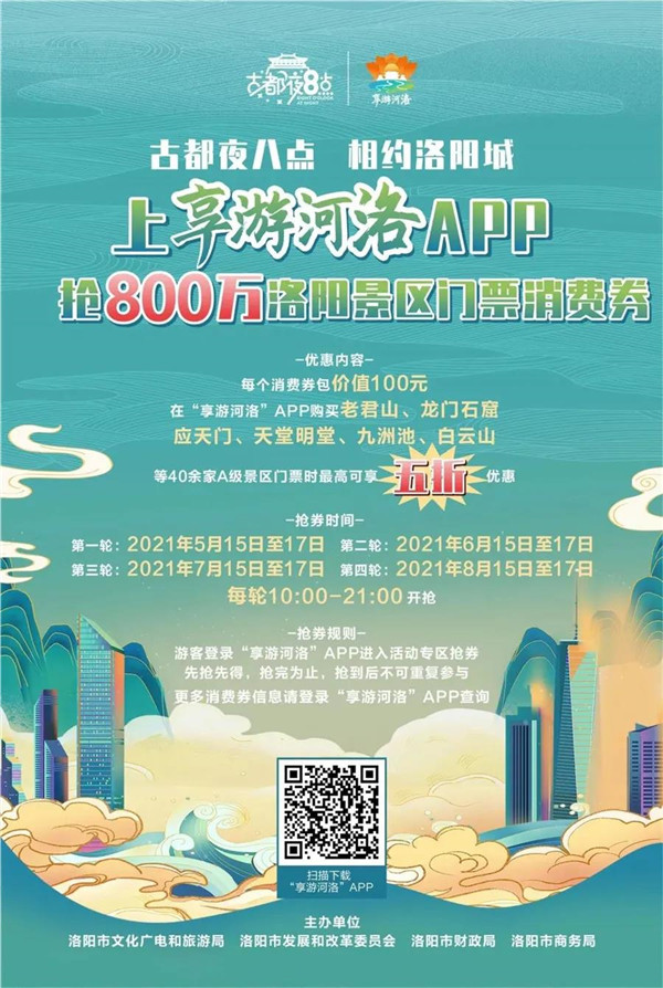 為貫徹落實河南省政府“鉅惠夏季 火熱中原”文旅消費促進活動工作部署,激發(fā)洛陽市文旅市場活力,推動文旅消費提質(zhì)擴量,助力國家文化和旅游消費示范城市工作持續(xù)提升,按照洛陽市委、市政府安排部署,決定在2021年5月至8月期間,開展“古都夜八點 相約洛陽城” 文旅促消費活動。