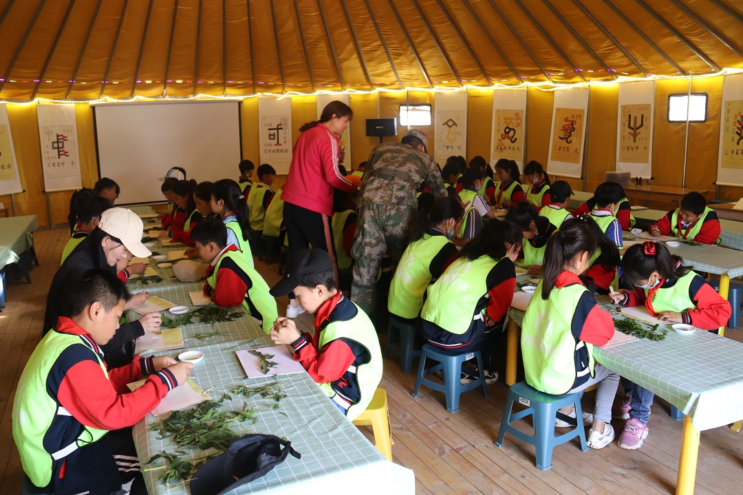“你看,是不是很漂亮?這是我找的最美的花和草,親手制作的作品,真是太過癮了!”“制作小能手”們個個興奮不已地介紹著自己的研學作品。
