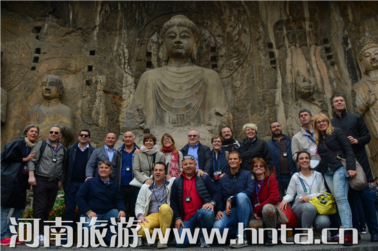 嘉賓在龍門石窟合影留念