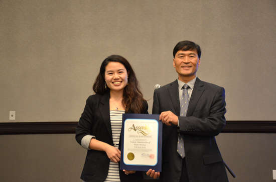 田太平處長代表省旅游局接受加州眾議員朱感生賀信