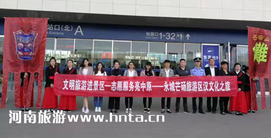 4月27日“文明旅游進(jìn)景區(qū)·志愿服務(wù)亮中原”主題活動(dòng)在鄭州東站舉行“文明旅游進(jìn)景區(qū)出發(fā)儀式”,河南省旅游局和河南省旅游局信息中心青年志愿者,在東站和高鐵上發(fā)放文明旅游宣傳資料、芒碭山門票等,倡導(dǎo)文明旅游新風(fēng)尚。省內(nèi)十余家新聞媒體及今日永城報(bào)社、永城電視臺(tái)、永城手機(jī)臺(tái)、漢興網(wǎng)等當(dāng)?shù)孛襟w參加了出發(fā)儀式。