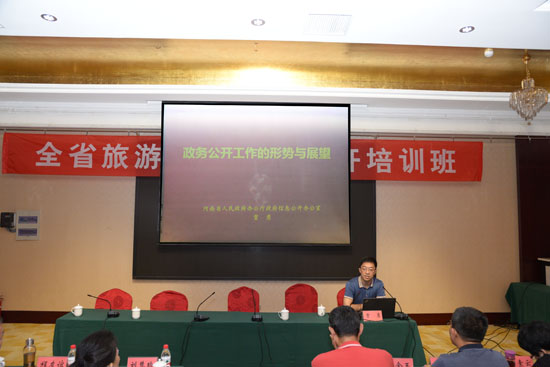 培訓(xùn)班上,河南省政府信息公開辦公室賈勇同志以"政務(wù)公開工作的形勢(shì)與展望"為主題,結(jié)合十八大以來黨中央國(guó)務(wù)院對(duì)政務(wù)公開工作的總體部署和新要求,分別就政務(wù)公開工作的歷程與現(xiàn)狀、政務(wù)信息的采編與報(bào)送、政務(wù)網(wǎng)站的規(guī)范建站、加強(qiáng)旅游宣傳與監(jiān)督、及時(shí)回應(yīng)輿情等方面進(jìn)行了培訓(xùn)。賈勇同志的授課,深入淺出、生動(dòng)活潑,贏得了學(xué)員的熱烈掌聲。大家紛紛表示,這次培訓(xùn)非常重要和必需,通過培訓(xùn)不僅在思想上進(jìn)一步加強(qiáng)了對(duì)政務(wù)信息工作的重視,對(duì)于不斷提高整體業(yè)務(wù)素質(zhì),加強(qiáng)信息公開效率,提高信息工作質(zhì)量也有很大幫助。