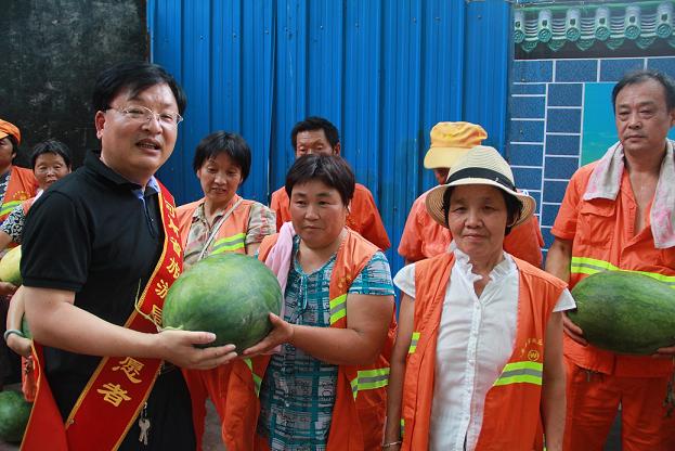 連日來,鄭州市出現(xiàn)持續(xù)高溫天氣,廣大環(huán)衛(wèi)工人冒著酷暑堅(jiān)守在一線。按照省直工委要求,7月28日中午,人才中心組織黨員干部前往金水區(qū)環(huán)衛(wèi)中轉(zhuǎn)站開展了“夏日送清涼”慰問關(guān)愛環(huán)衛(wèi)工人的活動(dòng),向正在勞動(dòng)的環(huán)衛(wèi)工人送上500多斤西瓜。