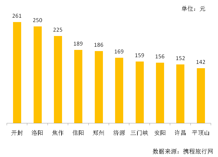 2018年河南“五一”假日期間,開封、洛陽、焦作、信陽、鄭州、濟源、三門峽、安陽、許昌以及平頂山等城市的酒店均價排名位居河南省前十位。開封、洛陽、焦作等特色旅游城市的酒店預訂和消費價格均有所攀升,節(jié)日效應顯著。