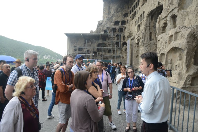 5月29日上午八點,考察團(tuán)離開登封,來到了十三朝古都洛陽。走進(jìn)世界文化遺產(chǎn)龍門石窟景區(qū),為精湛的石窟雕刻藝術(shù)所震撼。中午,在龍門石窟東山賓館,洛陽市舉行了洛陽旅游的精彩推介。洛陽市人民政府副秘書長胡大鵬向國外旅游商發(fā)出熱情的邀請,歡迎大家?guī)F(tuán)走進(jìn)古都洛陽,品味洛陽深厚的歷史人文和優(yōu)美的自然風(fēng)光。