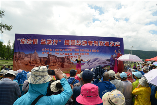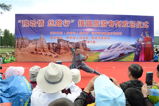今年是“豫哈情 絲路行”三年主題旅游援疆活動的第一年。產(chǎn)業(yè)援疆,旅游先行。據(jù)河南省旅游局副局長周耀霞介紹,今年河南旅游援疆首次提出大援疆概念,以河南為主要客源市場,面向全國引進旅游專列,全年將有60趟援疆旅游專列開抵哈密,輸送接待游客5萬余人,其中約有三分之一是河南游客專列。