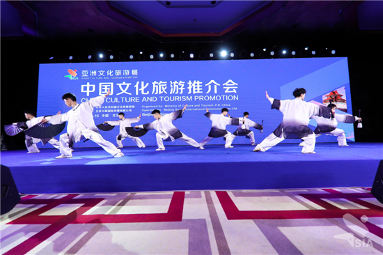 作為“亞洲文化旅游展”的重要配套活動(dòng)之一,中國文化旅游推介會(huì)在北京長城飯店舉行。中國文化和旅游部領(lǐng)導(dǎo),亞洲各國駐華使節(jié)代表,各省、自治區(qū)、直轄市文化和旅游廳(局)負(fù)責(zé)人及國際文化旅游機(jī)構(gòu)代表等共計(jì)450余人參加活動(dòng)。來自河南的少林功夫和太極拳表演《氣韻河之南》作為推介會(huì)壓軸節(jié)目,為各位來賓獻(xiàn)上了一場(chǎng)視覺盛宴,行云流水的太極拳和快速有力的少林功夫呈現(xiàn)出完美的結(jié)合,動(dòng)靜相宜的表演效果給觀者帶來強(qiáng)大的震撼力和感染力,向全世界充分展示了中國功夫的強(qiáng)大力量,進(jìn)一步提升了中原文化的影響力。