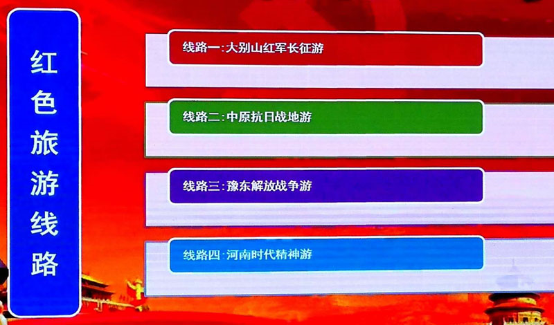 為慶祝中華人民共和國成立70周年,深入開展好“不忘初心、牢記使命”主題教育活動,6月29日,河南省文化和旅游廳在新縣大別山干部學(xué)院舉行河南紅色旅游推介會,發(fā)布了最新四條紅色旅游路線,這四條路線分別是:大別山紅軍長征游、河南抗日戰(zhàn)地游、豫東解放戰(zhàn)爭游、河南時代精神游。
