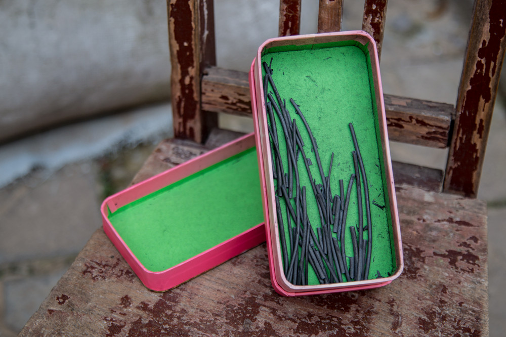 柳楸,方言里也叫做黑條兒、黑丑兒,是由柳條燒制而成的炭條,相當(dāng)于古代的鉛筆,用于描圖,如果畫錯了就用軟布彈去,這也是“撲灰年畫”名稱的來歷。