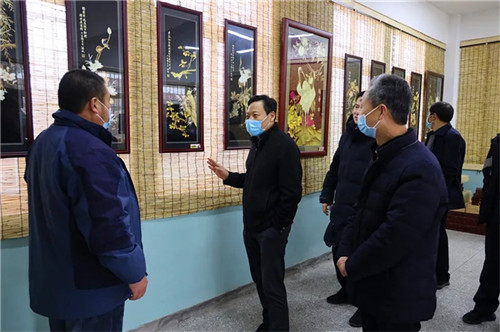 在大朱行政村小學的蘆葦畫展廳里,李延慶仔細聽取了淮陽金穗子蘆葦工藝有限公司經(jīng)理、市級非遺傳承人葛磊的介紹,他對葛磊“用匠人手藝助殘扶困”的事跡表示欣賞,并鼓勵他利用家鄉(xiāng)優(yōu)勢資源,為打造淮陽優(yōu)質文創(chuàng)產(chǎn)品作出更大貢獻。