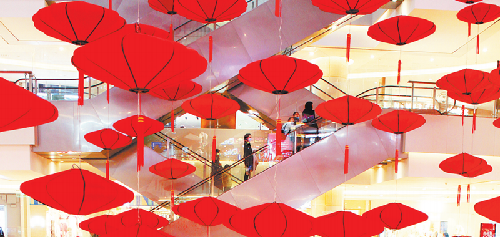 2月2日,鄭州某商場掛起燈籠迎接春節(jié)的來臨。郭子璇 攝