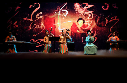 河南博物院華夏古樂團的演員們在為觀眾演奏(2020年1月1日攝)。新華社發(fā)