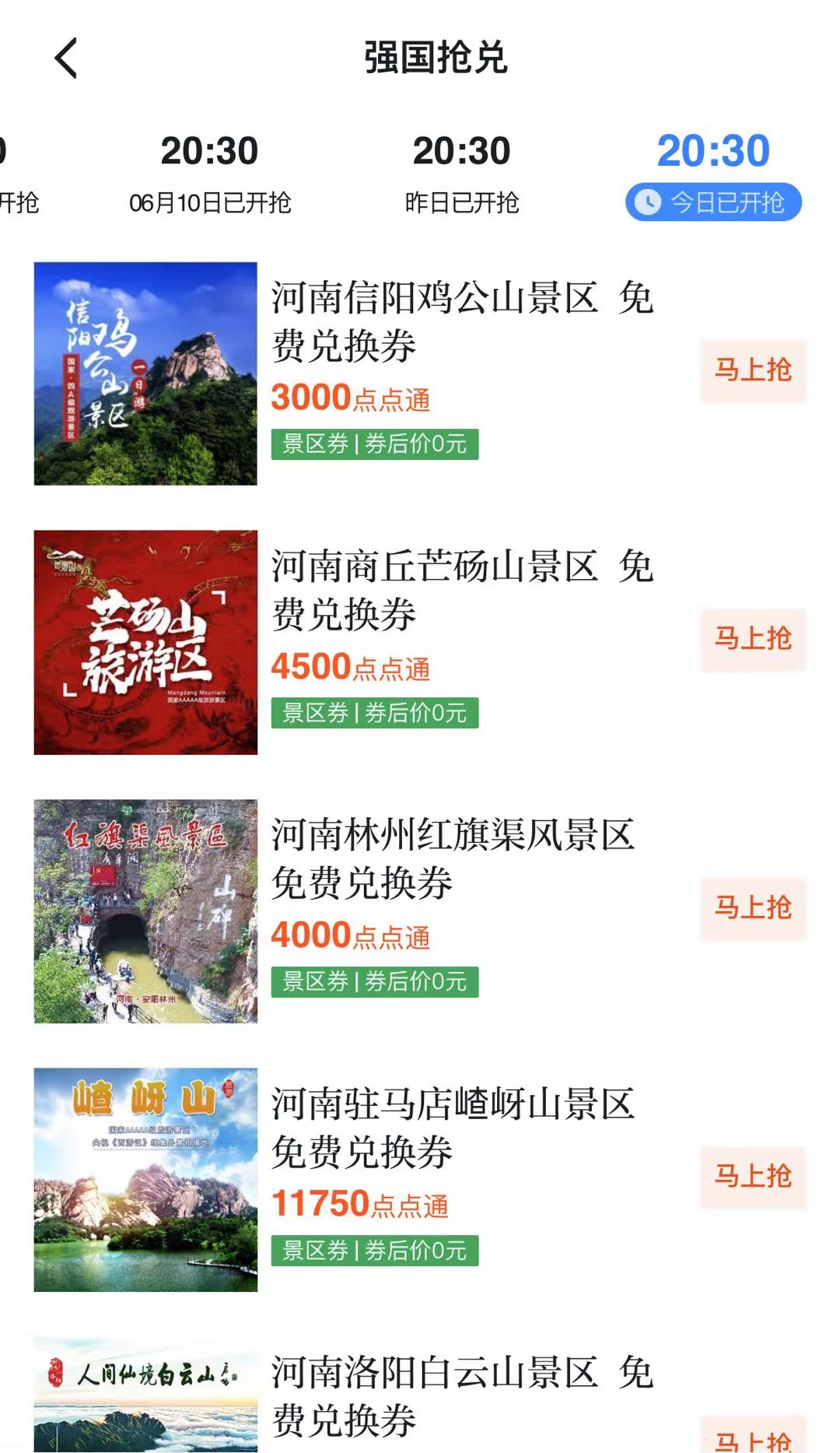 為落實(shí)中央有關(guān)指示要求,推動(dòng)開展“學(xué)習(xí)強(qiáng)國(guó)”學(xué)習(xí)平臺(tái)積分兌換旅游景區(qū)門票活動(dòng),提升“學(xué)習(xí)強(qiáng)國(guó)”學(xué)習(xí)平臺(tái)用戶的積極性和獲得感,同時(shí)為旅游景區(qū)提供宣傳展示平臺(tái),6月15日,河南省文化和旅游廳在“學(xué)習(xí)強(qiáng)國(guó)”正式上線河南旅游景區(qū)優(yōu)惠服務(wù)平臺(tái),用戶可通過(guò)學(xué)習(xí)平臺(tái)積分,兌換河南旅游景區(qū)門票。