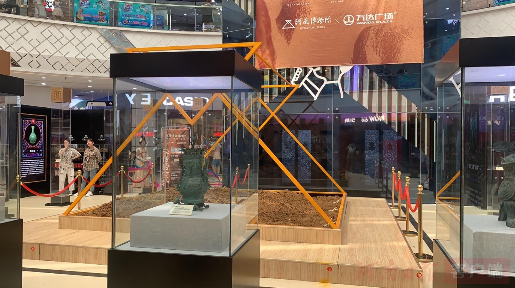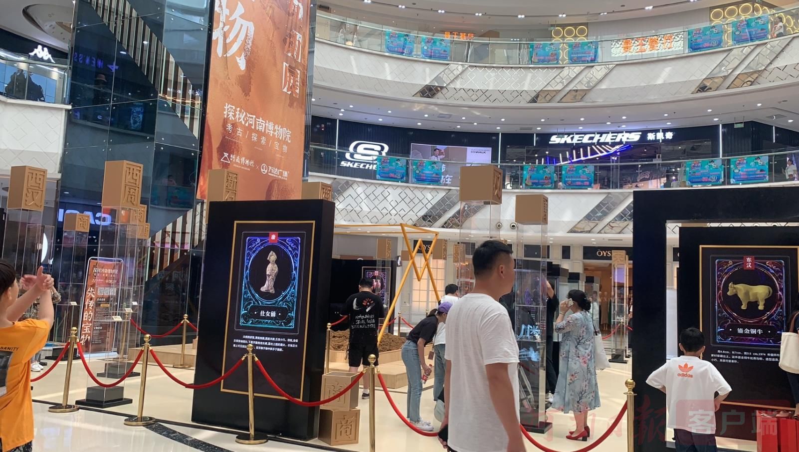 這一次,它們又大開腦洞“放大招”了。7月3日,河南博物院走進(jìn)鄭州二七萬達(dá)廣場舉辦了“探見博物館之旅—河南博物院《失傳的寶物》考古盲盒互動(dòng)展”,首次將文創(chuàng)特展“搬”進(jìn)商場。展覽分為展示區(qū)與互動(dòng)區(qū)兩大空間,展出了22款考古盲盒中的“寶物”,以及蓮鶴方壺、武曌金簡、婦好鸮尊、賈湖骨笛等珍貴文物的仿制品,吸引著這里來來往往的顧客一探究竟,近距離感知中華文化的魅力。