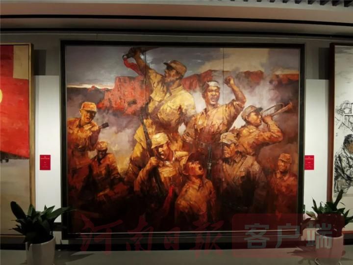 此次展出的兩大展覽中,河南畫家侯震創(chuàng)作《習(xí)近平總書記考察黃河》入選“紅船頌”全國美術(shù)精品創(chuàng)作工程作品展,展出結(jié)束后將被南湖革命紀(jì)念館永久收藏。此前他的另一幅巨幅作品《西北革命烽火》入展中國共產(chǎn)黨歷史展覽館;河南有8件作品入選第五屆“紅船頌”全國美展,入展數(shù)量位居全國前列。
