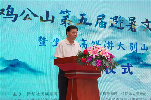 河南省文化和旅游廳黨組成員、副廳長曲徑宣布“雞公山第五屆避暑文化季暨坐著高鐵游大別山”活動正式啟動