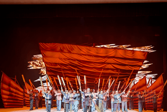 現(xiàn)代豫劇《黃河紅帆》是河南文華大獎獲獎劇目,由濮陽市戲劇傳承保護中心排演。該劇以1947年6月劉伯承、鄧小平率領(lǐng)12萬人民軍隊在臺前縣孫口鎮(zhèn)強渡黃河、挺進中原、千里躍進大別山的革命史實為背景,以濮陽老區(qū)人民不怕流血犧牲、不畏艱難險阻、積極參軍參戰(zhàn)、踴躍支前的動人故事為切入點,用藝術(shù)形式還原那段激情燃燒的光輝歲月,表現(xiàn)了濮陽老區(qū)人民擁戴人民軍隊、擁護共產(chǎn)黨的赤誠情懷,展現(xiàn)了人民軍隊不畏艱險、英勇無畏的革命精神,謳歌了解放戰(zhàn)爭時期軍愛民、民擁軍的魚水深情。全劇情節(jié)跌宕起伏,唱腔韻味十足,表演激情酣暢,贏得了現(xiàn)場觀眾陣陣熱烈掌聲。