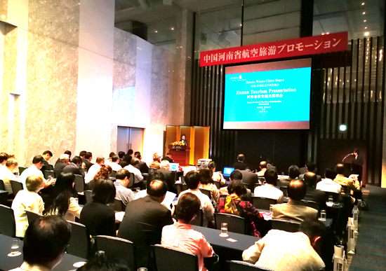 9月11日上午,河南航空旅游推介團在日本東京王子大飯店隆重推介河南旅游產(chǎn)品。河南省旅游局副局長周耀霞,南方航空河南航空有限公司黨委書記王愛榮,國家旅游局駐東京辦事處主任王偉,南方航空東京支社長全思斌, 日本旅行業(yè)協(xié)會海外旅行推進部部長權(quán)田冒一,鄭州市、三門峽市、靈寶市旅游局及云臺山景區(qū)、芒碭山景區(qū)、白馬寺景區(qū)、黃河風(fēng)景名勝區(qū)、洛陽雞冠洞景區(qū)、三門峽天鵝湖國家城市濕地公園等景區(qū)負責(zé)人,河南中州國旅、路仕達國旅、大唐國旅、河南旅游集團、鄭州海外國旅等旅行社代表,人民網(wǎng)、新華網(wǎng)駐東京記者,日本朝日新聞、消費生活等媒體及當(dāng)?shù)芈糜螛I(yè)界代表100余人出席本次活動。