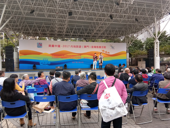 4月4日-10日,國(guó)家旅游局組織內(nèi)地旅游代表團(tuán)赴港澳開展“美麗中國(guó)-2017絲綢之路旅游年宣傳推廣活動(dòng)”。國(guó)家旅游局副局長(zhǎng)李世宏、澳門特區(qū)政府社會(huì)文化司司長(zhǎng)譚俊榮、香港立法會(huì)議員姚思榮等出席了在當(dāng)?shù)嘏e行的旅游推介會(huì)及公眾推廣活動(dòng)。河南省旅游局組織中原國(guó)旅、省青旅與江蘇、廣東、上海、新疆等24個(gè)。▍^(qū)、市)旅游委(局)及百余家內(nèi)地旅游企業(yè)參加了此次活動(dòng)。
