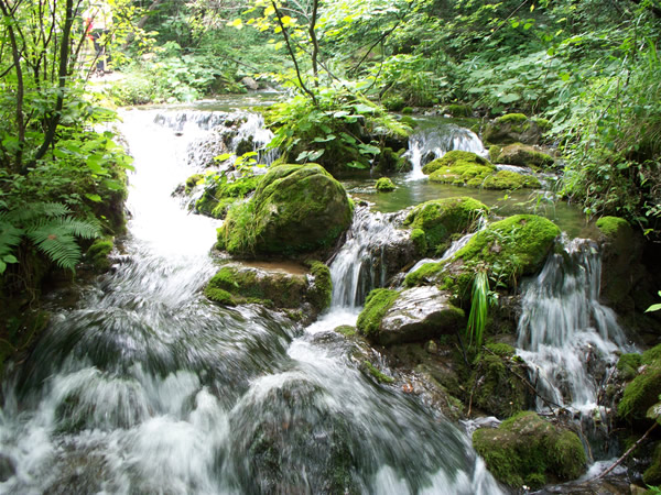 一絕:重渡溝的水。北方景區(qū)普遍缺水,重渡溝得天之獨(dú)厚,上百個(gè)泉眼數(shù)百股泉水從地球深處噴涌而出,匯成了億萬斯年源源不斷的蘭溪清流。水的執(zhí)著,大山的鋼毅,炭酸鈣的品質(zhì),雕琢出姿態(tài)萬千、形狀各異的泉水、飛瀑,飛虹瀑狂放不羈,;泄憤瀑一波三折,冰粉玉碎;水簾仙宮瀑布纖手輕抖,絲舒簾垂……林林總總30余條,舉之不一。在這里水的狂放,水的輕俏,水的張揚(yáng),水的柔美無處不表現(xiàn)的肆意汪洋。酣暢淋漓。