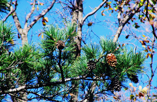 【油松王(古松二將)】在漢山金頂祖師廟前后,各有一棵大松樹,干枝粗壯,挺拔偉岸,是漢山最高大粗壯、年齡最長(zhǎng)的古樹,被稱為大將軍、二將軍,可惜二將軍前些年被砍掉。