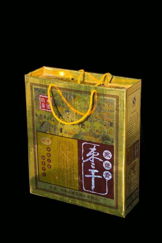 永城棗干:永城棗干以長(zhǎng)紅棗為原料,刮刀削皮,放在秫梃炕床上,用木炭火炕軟,取出棗核,回炕至果肉松軟取出,以細(xì)白面拌后造型,再回炕或曬干?怀傻臈椄,橙黃光亮,晶瑩剔透,質(zhì)軟稍韌,味甜如蜜,名日棗脯,有補(bǔ)虛健身的功效。明朝仁宗皇后張娘娘將永城棗干帶人宮中,深受仁宗喜歡,遂列為貢品,故又稱“貢干”。永城棗干以豐莊炕制的最優(yōu)。