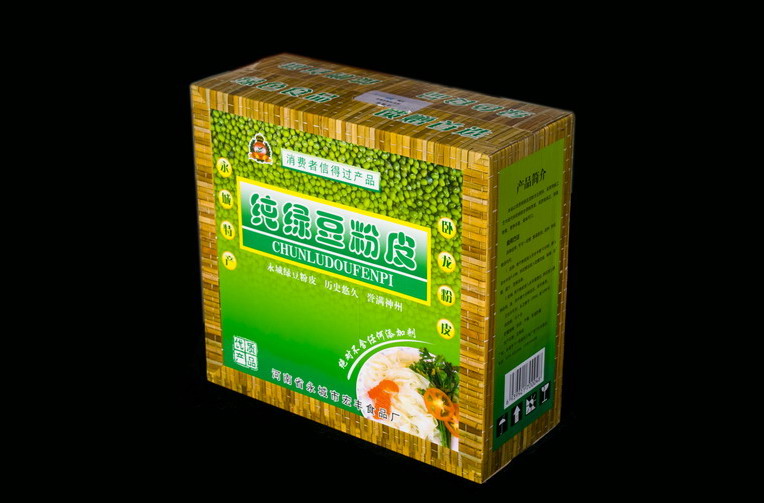 純綠豆粉皮產(chǎn)品:采用優(yōu)質(zhì)純綠豆淀粉為主原料,采用傳統(tǒng)工藝與現(xiàn)代科技相結(jié)合調(diào)制而成。其質(zhì)地純正、耐蒸耐煮、營(yíng)養(yǎng)豐富、美味可口。