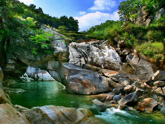 休閑戲水——暴瀑峽游覽區(qū),全長五公里,區(qū)內(nèi)既有郁郁蔥蔥的生態(tài)林地,又有跌宕奔流的瀑灘溪澗,還積淀了深厚的道教文化和離奇的民間傳說。真武祖師拋袱臺發(fā)奮明志,木魚石斬妖除怪,五福地為民造福,靜心潭修心明性等傳奇故事號稱幽密,被游客譽(yù)為“青山秀水藏古事,奇絕幽密暴瀑峽”,堪稱中原最佳戲水峽谷。