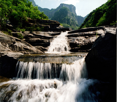張溝瀑布融泉、溪、河、譚、瀑之精華。青山、碧水、白云、藍天與古樹、林蔭、山風(fēng)、民宅相映成趣,組成獨領(lǐng)太行風(fēng)騷的奇特佳境。