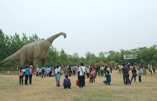 2010年8月份金鷺鴕鳥游樂園和北美最知名的恐龍展覽公司加拿大恐龍皇有限責(zé)任公司投資500萬美元興建了我國(guó)最大的恐龍科普基地。恐龍科普基地占地百余畝,位于鴕鳥園內(nèi),40多只恐龍是根據(jù)已發(fā)現(xiàn)的恐龍化石,按原始大小仿真制造。這些形態(tài)各異、或兇猛或溫柔的仿真恐龍會(huì)動(dòng)會(huì)叫會(huì)呼吸,皮膚柔軟,肢體靈活,如同復(fù)活一般,栩栩如生地潛伏在鴕鳥園茂盛的樹叢中和水塘內(nèi),有的張牙舞爪,有的低沉吼叫,有的正在下蛋,有的噴水嬉戲。妙趣橫生的恐龍?zhí)矫刂靡欢〞?huì)讓您充滿驚奇與收獲,逼真的場(chǎng)景也會(huì)帶您穿越時(shí)空,夢(mèng)幻般回到億萬年前的侏羅紀(jì)時(shí)代。