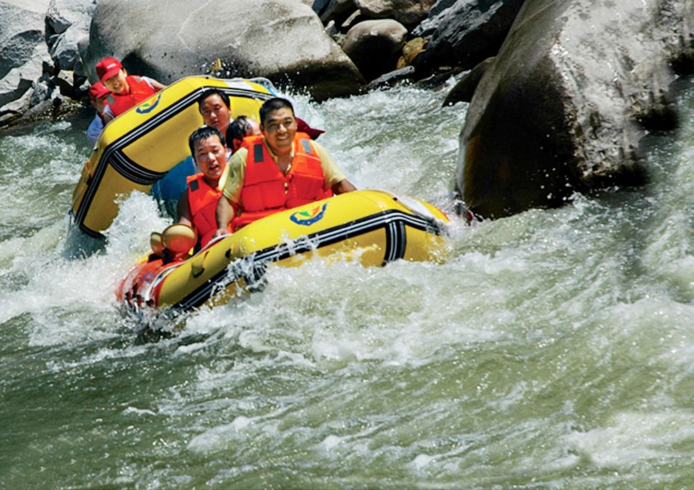 設(shè)備先進(jìn),功能齊全:湍河為常流河,一年四季無枯水期。為保證漂流用水,上游建起儲(chǔ)量500萬立方米的攔蓄大壩,確保水資源供應(yīng)無缺。600只氣墊船、600套救生衣、300副頭盔,可滿足日8000人的接待量。在上下碼頭游客集散地,采用東亞風(fēng)格,分別建有接待中心、服務(wù)中心、購(gòu)物中心、商業(yè)中心、洗浴中心、停車場(chǎng)等服務(wù)設(shè)施,總投資達(dá)1.2億元。附近村鎮(zhèn)建有商貿(mào)中心、農(nóng)家樂賓館,形成食宿行游購(gòu)?qiáng)室惑w化服務(wù)。高起點(diǎn)、高品位、多檔次的設(shè)施和服務(wù),適應(yīng)不同品味的消費(fèi)者。