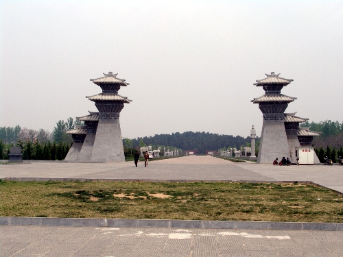漢光武帝陵由神道、陵園、祠院三部分組成,占地800余畝。陵冢高大,周長(zhǎng)約1400米,高約20米。陵園四周有短墻回護(hù),內(nèi)植隋唐古柏1500余株,蒼勁挺拔,蔥郁幽靜。