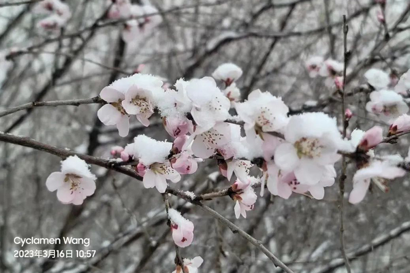 3月16日,一場(chǎng)桃花雪將新鄉(xiāng)南太行裝扮的分外妖嬈,宛若步入仙境,美不勝收。
