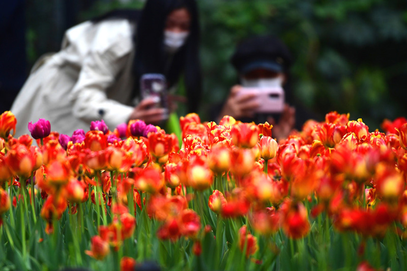 20日下午,鄭州市人民公園,部分郁金香花已經(jīng)盛開,吸引不少市民前來觀賞拍照。