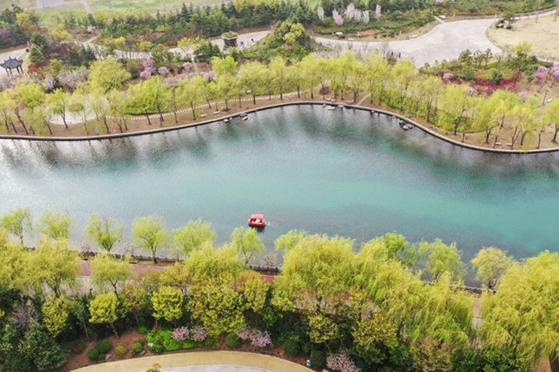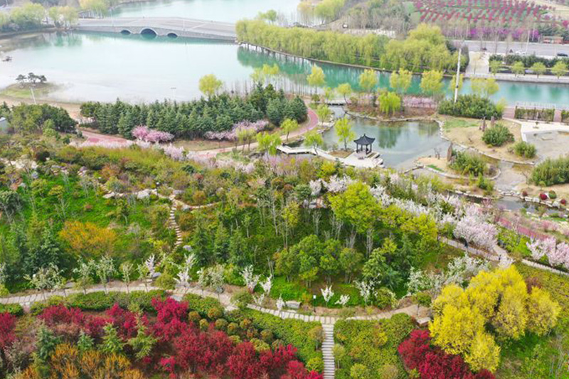 3月22日,河南省許昌市北海公園內(nèi)一派春和景明、生機(jī)盎然的景色(無人機(jī)照片)。