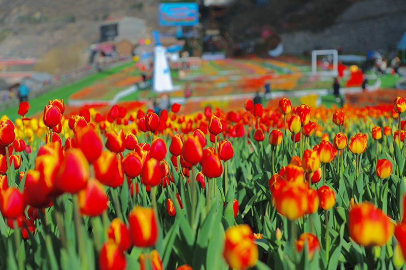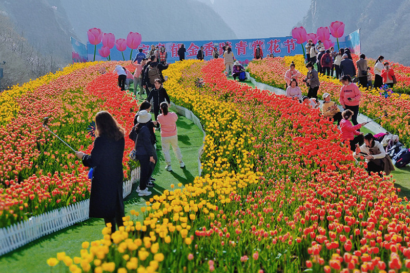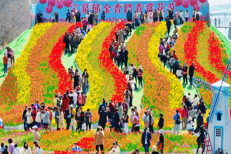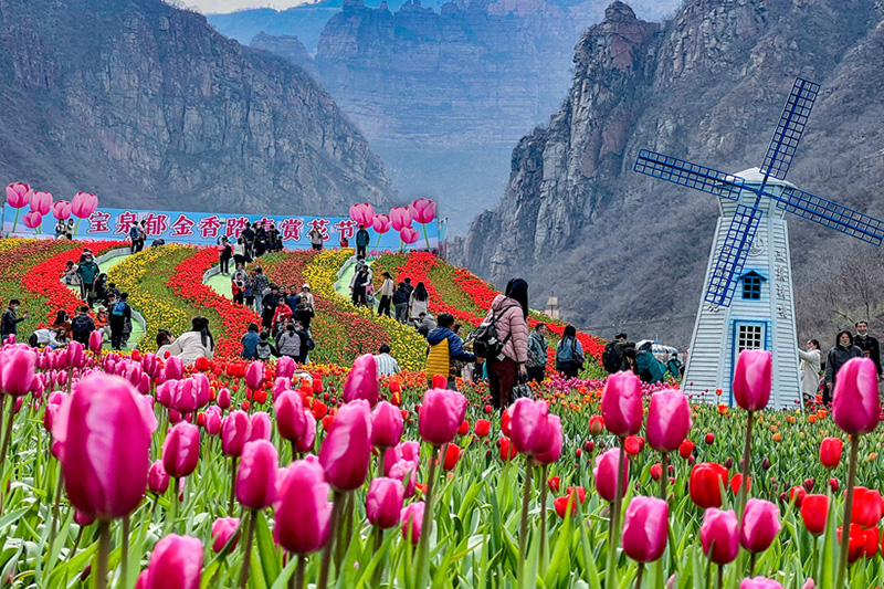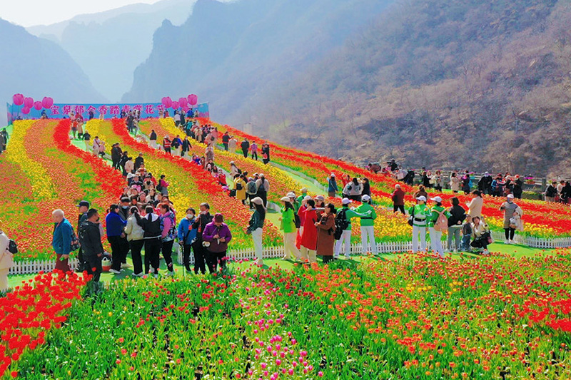 春風(fēng)拂面,春花如約而至。近日,巍巍太行山下的寶泉景區(qū),百萬株郁金香花開正艷。