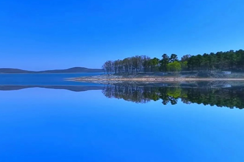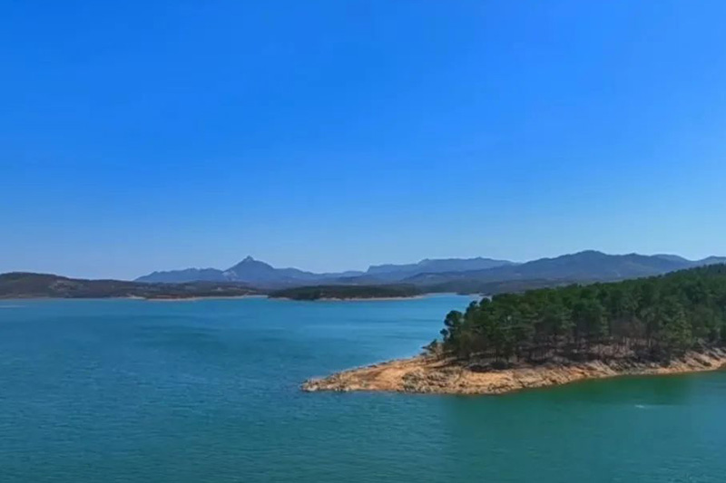 春日的銅山湖,澄明的湖水像一面鏡子,倒映著流云鶴影,澄澈透明。