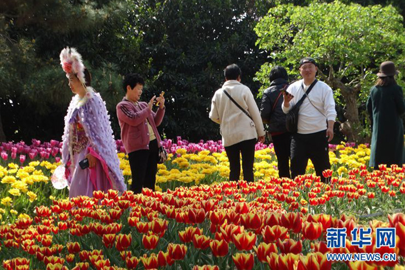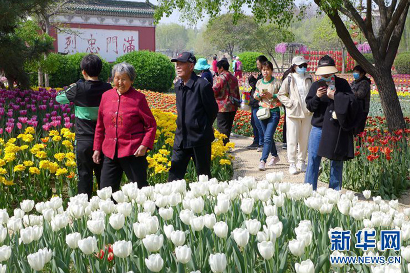 眼下春意正濃,河南省開封市天波楊府景區(qū)內(nèi)10余萬(wàn)株郁金香競(jìng)相開放,吸引眾多游客前來賞花拍照。新華網(wǎng)發(fā) (李俊生 攝)